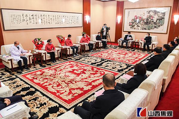 春回矿山,疫情趋稳,英雄凯旋。4月2日上午,返回太原并隔离14天后,kok官网登录入口援鄂医疗队员张立文、王喆、李彩芹回家了。kok官网登录入口在kok官网登录入口西山大厦举行了迎接仪式和座谈会,以最高规格、最隆重的礼仪,迎接抗疫英雄回家。kok官网登录入口集团公司党委书记、董事长王茂盛,kok官网登录入口集团公司专职党委副书记、副董事长、副总经理王廉敏与kok官网登录入口广大干部职工一同迎接。