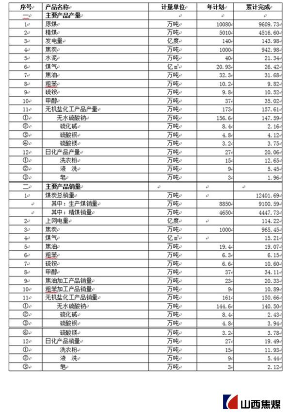 焦化、电力生产、民爆化学工业三个辅业相辅促进,焦炭产量943万吨,发电144亿度,化学工业产品产量316万吨。金融出资管理、现代物流业等新业务快速成长,后勤公司、融资租赁、融资担保、金融资本等四大金融出资平台成为新的经济增长点;物流贸易产业一体化成效显著,集中销售、电商平台销售进一步加强,效益初步显现。