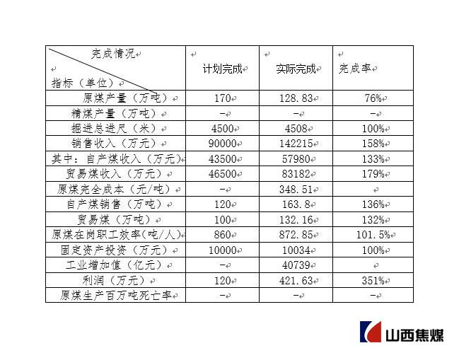2017年以来,公司认真贯彻落实集团公司“6789”行动计划和深化改革向纵深推进关键年的总体部署,以安全生产为第一责任,以风清气正、和谐稳定为重要保证,以推行契约化管理、激发内部活力为主要抓手,以岚县正利手续完善、洗煤厂建筑、煤钢联正智手续办理、节能绿化产业发展求突破为主攻方向,全力以赴推进各项工作。围绕改革发展大局,重点工作取得新突破:一是证照手续办理。岚县正利矿井竣工验收工作取得重大进展,取得了竣工验收批复文件、《安全生产许可证》,绿化部门同意矿井水深度处理后按地表Ⅲ类水达标排放,地方政府同意在工业广场内选址建筑选煤厂等。二是推进选煤厂建筑。可研立项和绿化方案获得市县政府主管部门审核备案后正式开工建筑,目前土建AYX爱体育已完成。三是加强绿化学工业作。在手续取得突破的基础上,采用“微滤+超滤”技术对矿井水进行深度处理,实现矿井水达到地表Ⅲ类水标准;对多管除尘器进行升级改造,采用双碱法脱硫工艺,实现锅炉达标排放;采用阶梯状对矸石场进行分区分片治理。完成岚县正利绿化设施竣工验收,对后续存在问题进行整改。四是推进契约化管理。按照“放权授权、科学监管、激励约束、从严管理、分类推进”的工作要求,确定了岚县正利、外采统销和森源节能绿化为契约化管理率先实行单位。优化配套政策,完善监督体系,建立容错机制,鼓励干事创业,从严管理,精准考核,严格兑现。五是推广应用新技术、新工艺。正利煤业104工作面确定为集团公司自动化综采工作面技术创新示范项目,目前工作面已安装完毕进行试运转。六是压缩公司管理层级,促进企业“瘦身健体”。加快推进煤钢联正智下属龙盛公司的注销工作,蒲县法院已抓紧启动龙盛公司的破产、审核和立案工作。七是推进职工转岗分流再就业工作。坚持“以人为本、合理调配、只减不增”的原则,积极与山焦人力沟通,发挥平台优势,利用各种信息平台向待岗职工推荐就业信息,鼓励待岗职工自主创业创收,分批分类推进待岗职工转岗分流再就业工作。